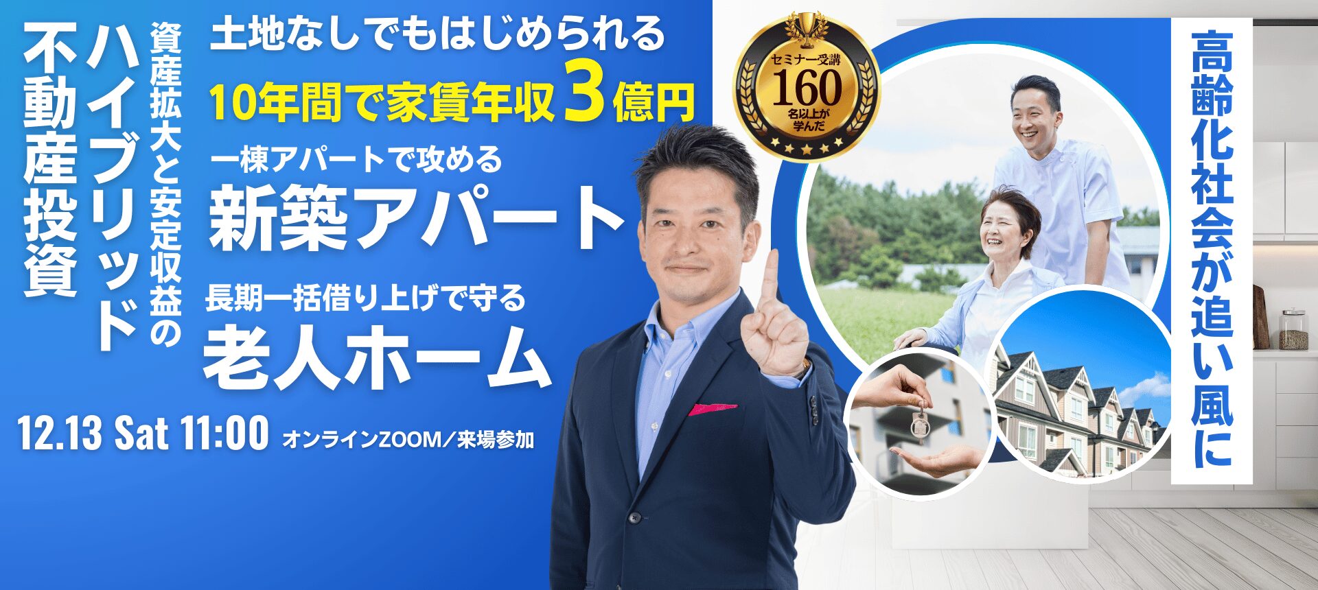 セミナー満足度90点超!200人以上の投資家が学んだ 福岡で資産拡大する老人ホーム×不動産投資セミナー 不動産投資は”住宅”から”介護”の時代へ。少子高齢 続きを読む